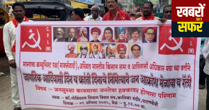 जागतिक आदिवासी दिन व क्रांतिदिन निमित्ताने माकपचे जनआक्रोश रॅली व मेळावा संपन्न