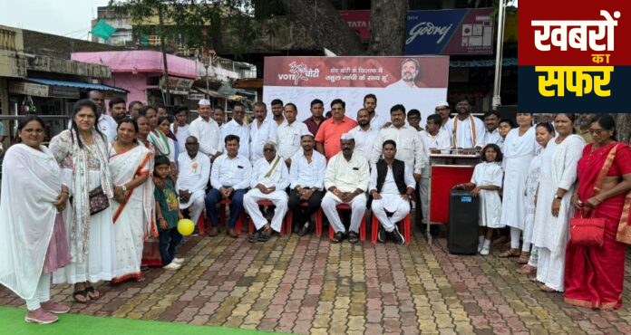 आज 15 ऑगस्ट रोजी काँग्रेस नेते मतदार याद्या घेऊन सकाळी 10 : 30 वाजता पासूनच गांधी चौकात ठाण मांडून बसले काँग्रेस नेत्यांना समर्थन देण्यासाठी तालुका अध्यक्ष अनिल नरुले हे सुद्धा गांधी चौकात उपस्थित झाले.