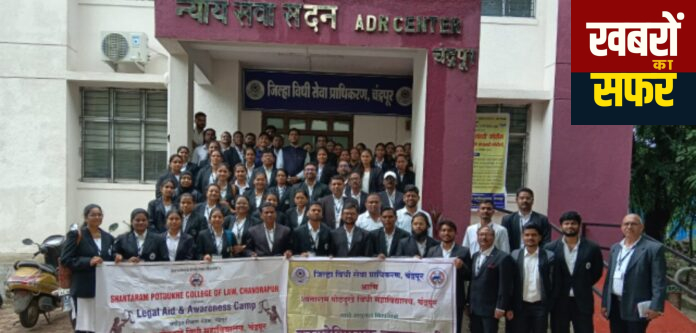 जिल्हा विधी सेवा प्राधिकvरण, चंद्रपूर व शांताराम पोटदुखे विधी महाविद्यालय, चंद्रपूर यांच्या संयुक्त विद्यमाने दिनांक १३/०८/२०२५ रोजी सकाळी ११:०० वाजता प्रमुख जिल्हा व सत्र न्यायाधीश श्रीमती समृद्धी एस. भीष्म मॅडम यांच्या मार्गदर्शनाखाली जिल्हा विधी सेवा प्राधिकरण, चंद्रपूर यांच्या कार्यालयातील कॉन्फरंस हॉलमध्ये कायदेविषयक जनजागृती कार्यक्रमाचे आयोजन करण्यात आले. सदरील कार्यक्रमात श्री. एस. एस. इंगळे साहेब, सचिव, जिल्हा विधी सेवा प्राधिकरण तथा दिवाणी न्यायाधिश वरिष्ठ स्तर, चंद्रपूर, श्री. पी. पी. कुलकर्णी साहेब, मुख्य न्यायदंडाधीकारी, चंद्रपूर, श्री. कोमल सुर्यवंशी, उपनिरीक्षक, वाहतूक शाखा, चंद्रपूर, विधी महाविद्यालयाचे प्राध्यापक श्री. पवन गुज्जर साहेब ईत्यादिंनी विधी महाविद्यालयाच्या विद्यार्थी व विद्यार्थीनींना विविध कायद्याबाबतचे मार्गदर्शन केले. सदरील प्रसंगी मोठ्या संख्येने विधी महाविद्यालयाचे विद्यार्थी उपस्थीत होते. सदरील कार्याकमाचे संचालन व आभार प्रदर्शन, अॅड. महेंद्र बी. असरेट यांनी केले.