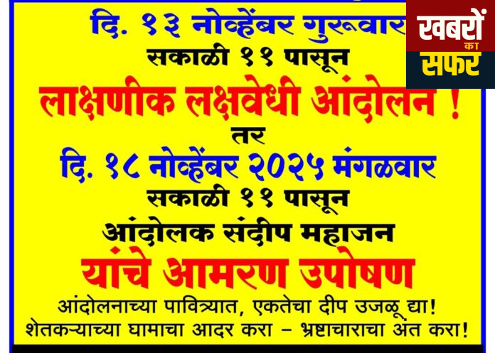*पाचोरा-भडगाव विधानसभा मतदार संघात उद्भवलेल्या शेतकरी अनुदान घोटाळ्याविरोधात सुरू असलेल्या तीव्र असंतोषाच्या पार्श्वभूमीवर आता सर्वांचे लक्ष आज दि. १३ नोव्हेंबर गुरुवार रोजी सकाळी ११ ते दुपारी ४ वाजेपर्यंत होणाऱ्या लाक्षणीक लक्षवेधी आंदोलनाकडे लागले आहे. मा. आमदार किशोरआप्पा पाटील, माजी आमदार तथा भाजपा नेते मा. दिलीपभाऊ वाघ, भाजपा नेते मा. अमोलभाऊ शिंदे, भाजपा नेत्या मा. सौ. वैशालीताई सुर्यवंशी, काँग्रेस नेते मा. सचिनदादा सोमवंशी तसेच उबाठा नेते मा. उध्दव मराठे व मा. रमेशशेठ बाफना या विविध राजकीय पक्षांच्या मान्यवरांनी तसेच पत्रकार बांधवांनी आतापर्यंत या प्रकरणी वेळोवेळी तीव्र निषेध नोंदविला आहे. मात्र आजच्या आंदोलनात हे मान्यवर नेमकी कोणती ठोस भूमिका घेतात, कोणती कृती जाहीर करतात आणि शेतकऱ्यांच्या पाठीशी कसे उभे राहतात याकडे सर्वांचे लक्ष केंद्रीत आहे.* आंदोलक संदीप महाजन यांनी स्पष्ट केले आहे की आता केवळ घोषणा व आश्वासनांनी शेतकऱ्यांचे दु:ख दूर होणार नाही, तर थेट पुर्ती आणि कारवाईची मागणी आहे. त्यासाठी दि. १८ नोव्हेंबर २०२५ रोजी सकाळी ११ वाजल्यापासून ते आमरण उपोषणास बसणार असल्याची घोषणाही महाजन यांनी केली आहे. शेतकरी हितासाठी ठेवलेल्या त्यांच्या ११ मागण्यांमध्ये 2025 ची अतिवृष्टी अनुदान जामनेर- चाळीसगाव प्रमाणे निकष लावून सरसकट खात्यात जमा करणे, २०१९ पासून आतापर्यंतच्या अनुदानाची सर्व माहिती पारदर्शकपणे प्रसिद्ध करणे, जालना, पाचोरा, मुक्ताईनगर येथे शेतकऱ्या अनुदान घोटाळे उघड झाले आहे त्यामुळे या प्रकरणाचे राज्यभर SIT/ED/CBI च्या तपासाची मागणी, पाचोरा येथील प्रथम तक्रारदाराच्या कबुलीनुसार तातडीने अटक, संशयित समितीऐवजी आर्थिक गुन्हा शाखेकडून स्वतंत्र तपास, न्यायालयीन प्रक्रियेपूर्वी आरोपींना पकडण्यासाठी स्वतंत्र पथक, सर्व पंचनामे व जबाब व्हिडिओ रेकॉर्डवर घेणे, लोकप्रतीनीच्या बनावट सह्या करणाऱ्यांची संपूर्ण नावे जाहीर करणे, ग्राम महसूल अधिकारी आशिष कडूबा काकडे व आरोपी गणेश हेमंत चव्हाण त्यांच्या नातेवाईकांना तातडीने अटक करणे व बोगस जमिनी व अवाजवी मालमत्ता खरेदीची चौकशी करून त्यांच्या मालमत्ता सरकार जमा करणे या मागण्यांचा समावेश आहे. या सर्व मागण्यांच्या केंद्रस्थानी शेतकऱ्याच्या घामाचा आदर आणि भ्रष्टाचाराचा निर्णायक अंत हीच भूमिका आहे. त्यामुळे आज आंदोलनाच्या स्थळी येणारे राजकीय व शासकीय मान्यवर आपल्या भूमिकेचे स्पष्ट विधान प्रसार माध्यमांसमोर करणार का, हे पाहणे महत्त्वाचे ठरणार आहे. शेतकरी, पत्रकार बांधव आणि हितचिंतकांच्या भावनांचे प्रतिनिधित्व करत आंदोलक संदीप महाजन यांनी सर्वांना आवाहन केले आहे –