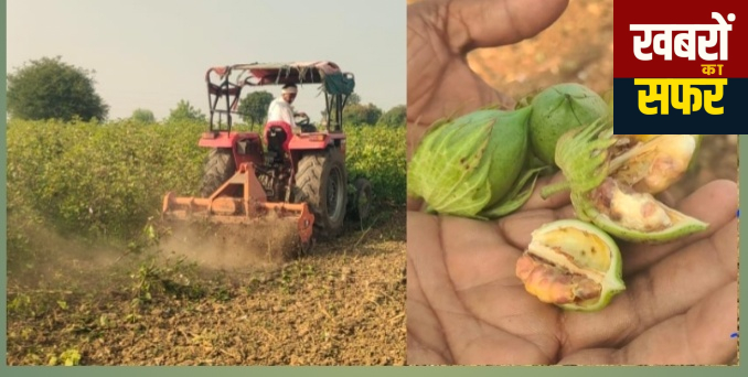 कपास के दाने सड़ने लगे हैं और उनमें कीड़े लग गए हैं।