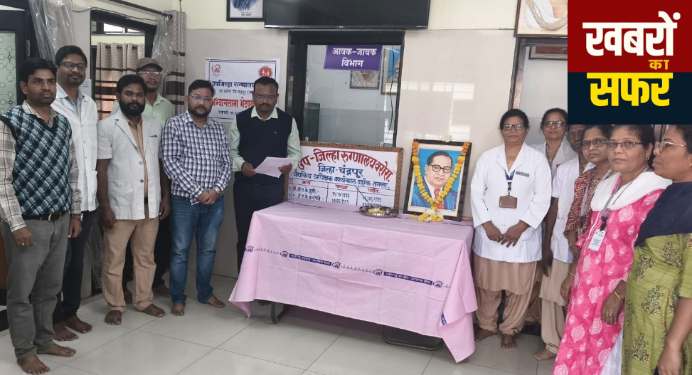 आज दिनांक २६ नोव्हेंबर ला भारतात सर्वत्र *संविधान* *दिवस* साजरा केला जातो.त्याचेच औचित्य साधून *ऊप* *जिल्हा* *रूग्णालय* *वरोरा* येथे दिनांक २६ नोव्हेंबर २०२५ ला वंदना विनोद बरडे सहायक अधीसेवीका उपजिल्हा रुग्णालय वरोरा जील्हा चंद्रपूर यांनी डॉ प्रफुल्ल खूजे वैद्यकीय अधिक्षक यांच्या मार्गदर्शनाखाली आयोजित केला.डाॅक्टर बाबासाहेब आंबेडकर यांच्या प्रतिमेचे पूजन डॉ .प्रतिक दारुडे वैद्यकीय अधिकारी व वंदना विनोद बरडे सहायक अधीसेवीका यांनी केले.सतिस येडे आरोग्य सहाय्यक यांनी *भारतीय* *संविधान* *ऊद्देशिकेचे* *वाचन* *केले* व सर्वांनी संविधानाची शपथ घेतली.या कार्यक्रमासाठी डॉ प्रतिक दारुडे, वंदना विनोद बरडे, संगिता नकले,तुलसी कुमरे, प्रदिप गायकवाड गितांजली ढोक, सतीश येडे ,बंडु पेटकर,बकमारे,रिना कन्नाके, महेंद्र कांबळे, शिवानंदन पाटील ,शुभम कुकळे, लक्ष्मीकांत ताले, अधिकारी व कर्मचारी उपस्थित होते.कार्यक्रमासाठी वंदना विनोद बरडे, बंडू पेटकर लक्ष्मीकांत ताले व रिना कन्नाके यांनी मेहनत घेतली.
