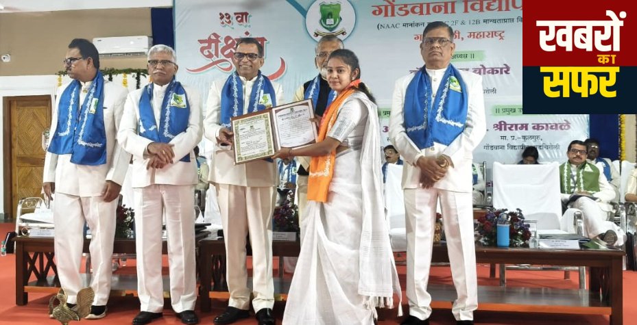 गोंडवाना विद्यापीठांतर्गत येणाऱ्या चंद्रपूर जिल्ह्यातील शांताराम पोटदुखे विधी महाविद्यालयात सन २०२४-२५ या वर्षी झालेल्या एल एल बी च्या अंतिम परीक्षेत हिंदू कायदा या विषयात सुवर्ण पदक पटकाविणाऱ्या कु. ट्विंकल सुधाकर गोहणे हिला गडचिरोली येथे विशेष तेराव्या दीक्षांत समारंभात मान्यवरांचा उपस्थितीत दिनांक २१ जानेवारी २०२६ रोजी सुवर्णपदक व प्रमाणपत्र देऊन गौरविण्यात आले.