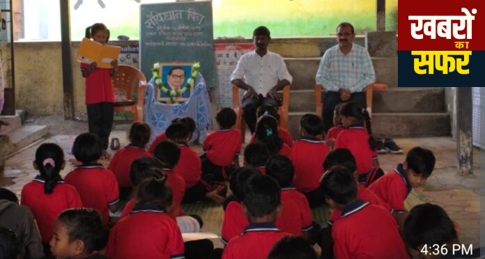 नितेश केराम आज दिनांक 26/11/25 रोजी संविधान दिनानिमित्त जिल्हा परिषद प्राथमिक शाळेमध्ये विविध कार्यक्रमाच आयोजन करण्यात आलं होत या कार्यक्रमामध्ये या शाळेचे मुख्य द्यापक आवंडे सर यांनी आपल्या सर्व विध्यार्थीला या संविधाना निमित्त मोलाचे मार्गदर्शन केले तसेच विध्यार्थी यांना ड्रा बाबासाहेब आंबेडकर यांचा विचार आपल्या मनामध्ये घेणे गरजेचे आहे तसेच ड्रा बाबासाहेब यांनी अख्या जगभरात आपल नाव व प्रतिष्ठा राखून आपले देशाले घडविले याच प्रामुख्याने आज जगभात ड्रा बाबासाहेब आंबेडकर संविधान दिवस साजरा केला जातो या प्रसंगी अतिथी म्हणून कार्यक्रमाचे अध्यक्ष श्री प्रशांत देवईकर अध्यक्ष शालेय व्यवस्थापन समिती यांनी अध्यक्ष क्षीय स्थान भूषविले तसेच प्रमुख पाहुणे म्हणून मान मोहनदास वाभीटकर मुख्यद्यापक मान विठ्ठल आवंडे तसेच शालेय व्यवस्थापन समितीचे सदस्य उपस्थित होते यावेळी कार्यक्रमाचे प्रस्ताविक मान विठ्ठल आवंडे सर यांनी केले तर सदर कार्यक्रमाचे संचालन कार्तिक जेणेकर यांनी तर आभारप्रदर्शन भाग्यलक्ष्मी दोरखंडे हिने केले या कार्यक्रमानंतर विध्यार्थी यांच्या चित्र स्पर्धा भाषण स्पर्धा रंगभरण स्पर्धा निबंध स्पर्धा घेण्यात आल्या तसेच या संविधान दिनानिमित्त गावातील नागरिकांनी आपली उपस्थिती दर्शवली